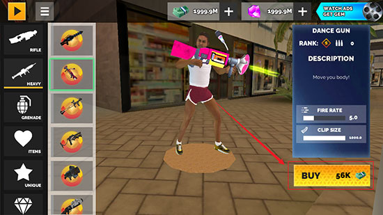 4、挑选你需要的武器,点击【BUY】购买即可,由于是,所以无需担心购买问题;