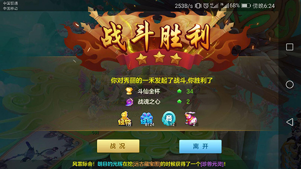 2、斗仙台:每天都可以免费挑战5次斗仙台,除了可以获得竞技积分和奖杯外,还可以获取经验奖励,当然等级越高获得的经验也越高