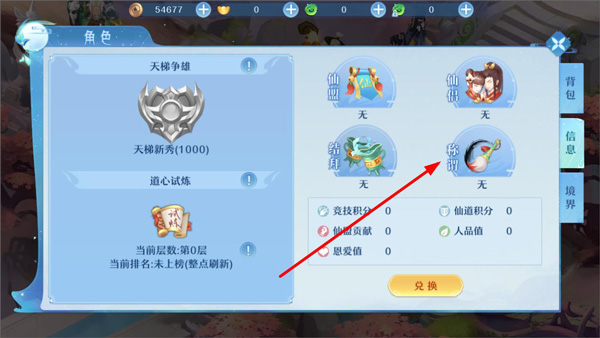 4、打开信息栏,玩家等级达到30级后可加入仙盟,达到40级可结交仙侣,达到50级可加入结拜,点击查看玩家称谓;
