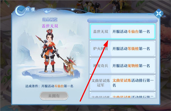 5、玩家参与开服活动达到开服活动第一名可获得称谓奖励;