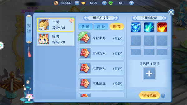 在坊市购买宠物秘籍可以学习技能,学习更多技能让宠物在玩法中更加游刃有余。