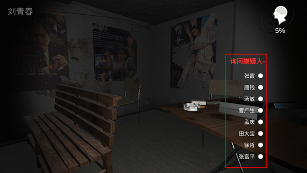 3、通过提示对嫌疑人进行逐个询问,根据对嫌疑人的描绘来了解更多隐藏的线索;
