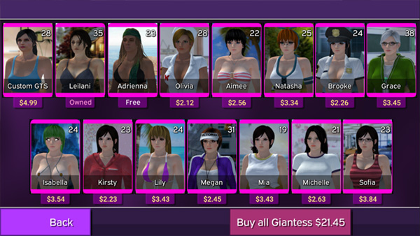 3、一款画面精致的人物巨大化冒险的模拟器游戏,游戏中玩家可以解锁护士、白领、健身等多种不同类型的女巨人冒险,这里一切都变小了,高楼大厦还没有你高,俯瞰这座城市,给你不一样的体验。