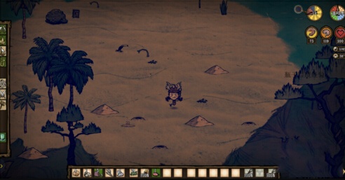 《饥荒:海滩》的最新版本,是一款横屏视角的生存冒险游戏,作为饥荒系列的续作,它有着独特的设定。这次,游戏主人公威尔逊意外发现自己被困在一座不知名的热带群岛之上。初临此地,映入眼帘的是湛蓝如宝石般的天空,温柔的海风轻拂面庞,一切都显得美好而宁静,仿佛世外桃源。然而,这份美好转瞬即逝,你很快就会意识到,想要在此地生存绝非易事。在平静美好的表象之下,实则暗藏着重重危机。玩家只能凭借自身力量,独自直面这些危机,在这座危机四伏的群岛上顽强求生。