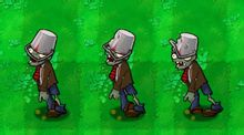 它的铁桶使其格外耐打,头顶铁桶的僵尸,生命力高,生命力是普通僵尸的6.5倍,移动速度慢,头顶的铁桶可以被磁力菇吸走,失去铁桶后成为普通僵尸。