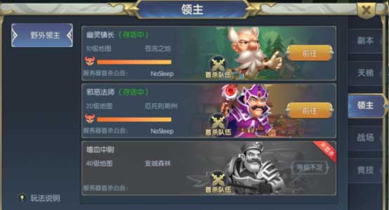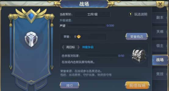 5、在第四个挑战战场板块中,每天都可以在时间点内参与,开启后玩家可以在战场中完成任务,完成任务可获得大量声望和大量贡献,更可组队进入进行挑战,不同等级段的玩家进入不同的战场。