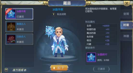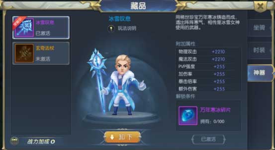 激活时装/神器,所有时装/神器属性都按照100%附加给角色