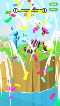 3、将所有对方的玩家推落之后即可到达岛上并和队友一起开启金币宝箱;
