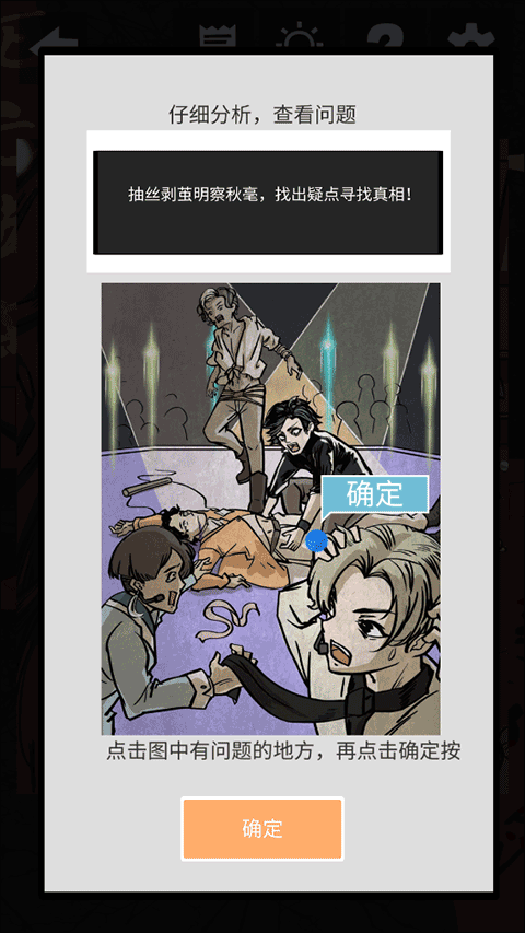 1、【简易玩法】根据前后剧情进行推理,接着找出线索。温馨提示:一通点击就好啦。