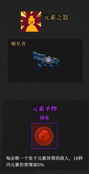 或是使用噬星者这类元素武器,配合觉醒“元素之怒”、秘卷“元素圣物”等提高元素输出的元素流,都是非常强力的培养方向。