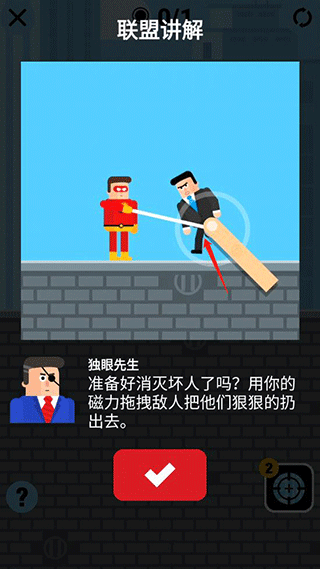 游戏最好玩的莫过于蜘蛛侠了,点击屏幕发射蛛丝就能粘住对手,两次发射后射中的目标会被吸引到一起,值得注意的是你必须保证人质完好无损,并消灭所有的敌人,这样才能完成任务,可以说挑战性满满啊,相信你玩过之后便会对其爱不释手的,快来下载体验吧。