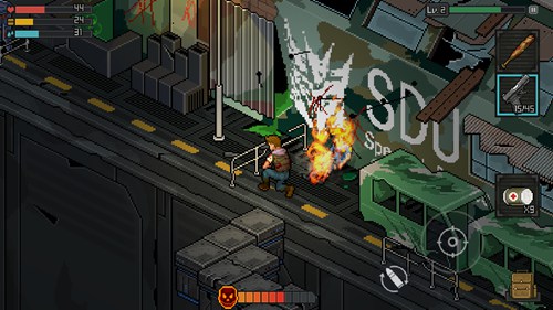 3、以复古像素画面打造,玩家所扮演的主角将会踏上寻找妻儿的道路,用各种各样的武器来生存下去。