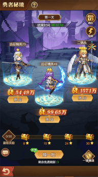 勇者秘境玩法是一种极具策略性的玩法,玩家需要根据当前己方战斗力,于三名供挑战的玩家中选择一名作为战斗对手,该玩法挑战成功可获得丰厚的奖励,并能根据对手难度获得挑战星级,挑战星级达到指定值时可用于领取进度宝箱。该玩法每天会重置进度。