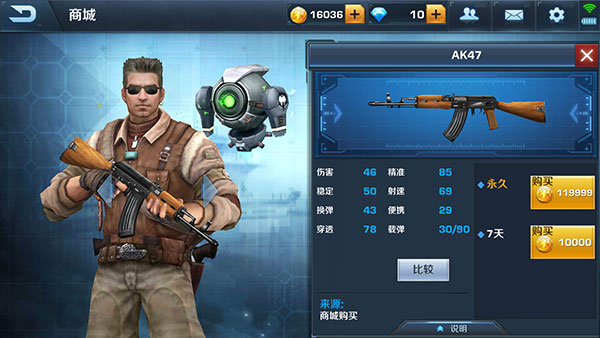 对比其他的AK47,黄金AK47的全部属性都有增加,这是全面性的,尤其每颗子弹的攻击增加5点伤害,打中一枪头,都可以直接秒杀了。