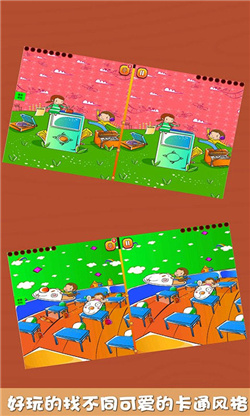 朵拉爱找茬,能锻炼孩子的观察力、眼力和动手能力!这是一款既充满游戏乐趣,又富有教育意义的儿童游戏。爸爸妈妈们可以和宝宝一起玩这款找茬游戏。关卡里会出现两张极为相似的图片,不过图中存在着诸如线条、图案等不一样的地方。每一关都设有时间限制,需要快速比较图像并找出所有差异。可要注意啦,每犯一个错误都会消耗你的时间哦。考验眼力的时刻到咯!