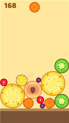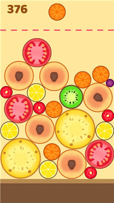 2、一开始玩建议大家有序的排列水果,遵从一个角落水果最大,越往外水果越小的感觉(类似2048),这样容易产生连续合成而节约空间。而且一旦大水果在中间很容易堆太高导致游戏失败。