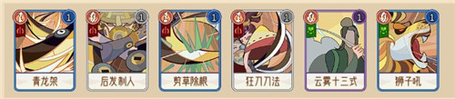 阵容:青龙架+后发制人+剪草除根+狂刀刀法+云雾十三式+狮子吼