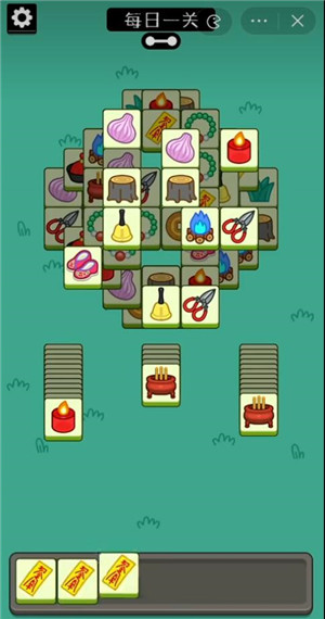 4、然后我们就正常能三消就优先利用下面的卡堆完成消除,消除时注意上面卡堆底部的图案,有针对的消除。