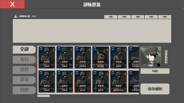 2、选择指挥官,根据指挥点数合理整备部队,超多兵种等你来解锁,一共可以预制五组;