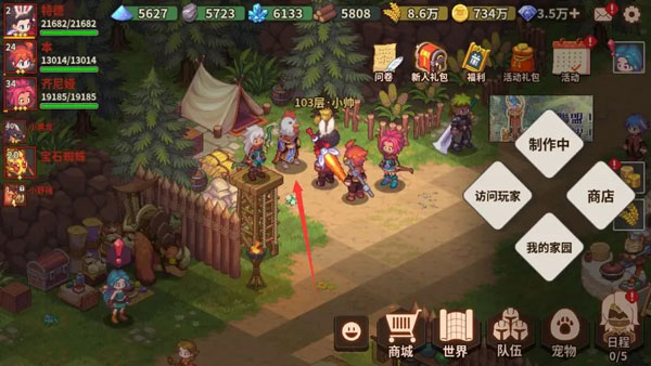 公鸡人——家园入口。玩家如果想要开启家园,在该npc出现后需要前往家园商店购买一个庄园所有证。在家园中可通过工作台和炼金炉制作道具,如附魔溶剂、强化石等。