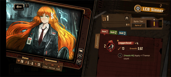 如果您能力超群,该罪人将成为您最强而有力的臂膀。然而,她也喜欢多管闲事,我们建议您用礼貌用语附和一下,不必深究。她在包括战术在内的多项技能上都算得上是专家,向她寻求帮助十分有效。顺带一提,她对工坊相关的技术也有所了解,您大可放心地让她负责修复边狱巴士。