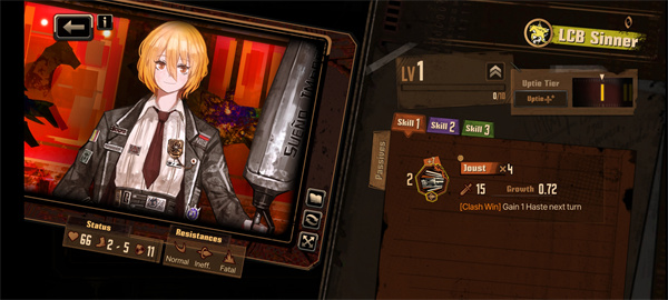 接着讲讲角色,游戏初始你便拥有全部罪人。从中挑选5个角色参与战斗,其余人员负责辅助战斗,无需实际登场,类似于施加增益效果(buff)。不过,触发该buff需要对应数量的资源,这些资源同时也是使用EGO的消耗品,每当使用EGO时,就会消耗一定量的此类资源。