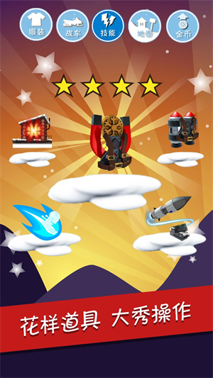 道具装备:劲爆极速云战车、腾云摩托、超多任你选!加速滑行好帮手!