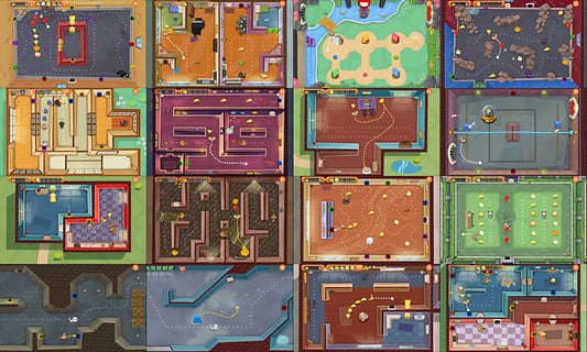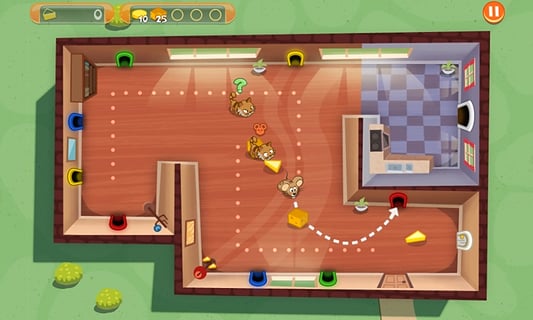 这款游戏的场景设计还是非常精致的,画面很有迪士尼动画的感觉。游戏每个小关卡是按照在本场景里面的路线排布的,大家看到的已经是小编解锁之后的关卡全貌了,实际上玩家在游戏的时候,只能在完成第一个关卡之后才能依次进行后面的游戏。下面就跟随小编一起看一下如何让这只小老鼠每关都轻松地躲过喵星人的看守,顺利的偷吃到奶酪吧。
