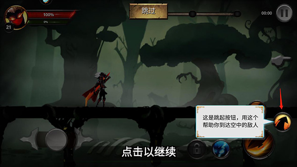 4、如图所示,这个按钮是跳起按钮,用这个帮助你到达空中击败敌人;