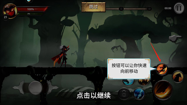 2、游戏采用经典的动作格斗操作方法,利用左手边这个按钮可以移动,只需要向左或向右拉;