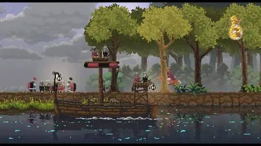 故事讲述了我们作为一个国王,到新的大陆来探险,并且将这里开发成自己的国土。游戏采用了横版2D画面呈现,在风格上保持了像素生存游戏的经典画风,背景以及人物均已像素模式呈现。