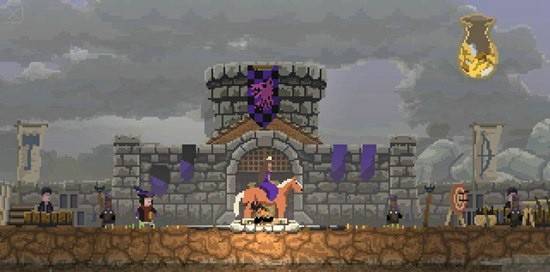 游戏的操作比较有意思,系统并没有设置固定的按键,而且在整个挑战过程中,我们的主角“国王”也不用去战斗,所以更不可能有战斗按钮了,我们所要做的就是通过手指左右滑动屏幕来控制行走,让主角在自己的领地中骑着骏马来回走动,巡视领地,监察各个建筑的建造状况,在建筑物旁向下滑动屏幕可以拨款强化建筑,并且还能收集人民和建筑的税务等。