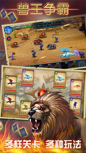 2、在《兽王争霸》中玩家将通过收集不同种类的动物,构建出自己的动物大军。游戏玩法类似于经典的《植物大战僵尸》,属于一款策略塔防类游戏,玩家可在不同线路上放置各类动物来进行攻击、防御等指令,目的是为了摧毁敌人的城池。