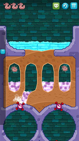 游戏引入"挑战模式",对关卡难度产生颠覆性的变革,会给您带来更多的乐趣!比如挑战模式中的"上下颠倒",所有物质的性质也是上下颠倒的,例如水往上流.以及"转换鸭子"挑战模式,此关的鸭子会变成另外一种鸭子.更多挑战模式期待您的挖掘!