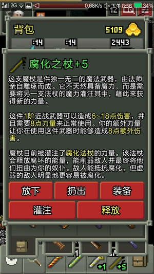 8. 背包位于右下角,通过它能够查看并使用武器、防具、卷轴、种子等各类道具。