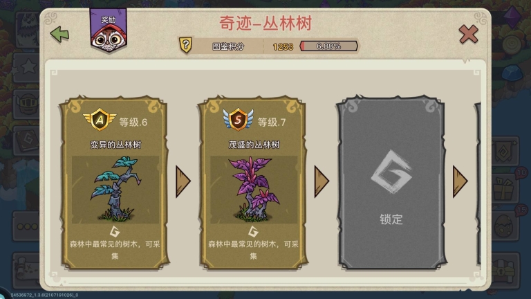 4、首先是采集神树,爆丛林木,然后升级丛林木,升级后采集丛林木,得到藤蔓,然后升级藤蔓到满级(藤蔓等级很低,满级为占四格的“藤蔓小屋”),点击小屋就可以产生荆棘,一共可以点三次,无法采集,在一定时间内还会持续生成5个左右,前提是周围有空间,这就是完整的采集荆棘的过程。