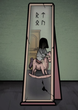 右转回到梳妆台处,用抹布擦拭镜子,得到密码527将密码输至右侧衣柜处,得到符箓酒配方