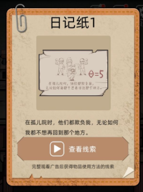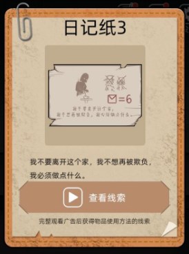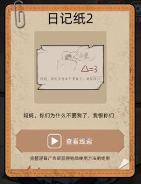 将音乐盒人偶和音乐盒手柄放在书桌右侧音乐盒上,再次点击音乐盒,得到日记纸1通过三张日记纸所给顺序,我们得到规律,密码为所构成图形的线条数