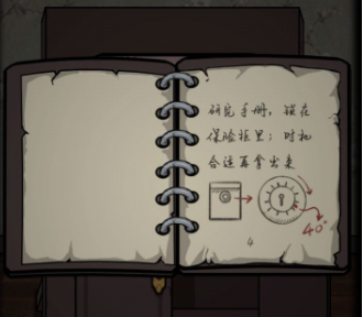 上楼进入黄色门的房间,右转用钥匙打开保险箱,旋转顺序如备忘录所示,得到研究手册