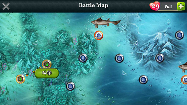 除了以上的玩法以外,游戏以推图为核心,通过策略上阵鲨鱼来进行战斗。
