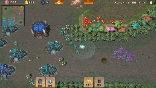 2)矿工模式:直接由基地生产矿工采矿获取资源。由于矿工采集效率可以升级,后期矿工采集资源略有优势,但是,矿工生命值较低。容易被摧毁。