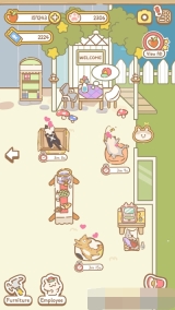 2.游戏场景和角色都采用卡通风格,可爱的猫咪和其他动物顾客让人忍不住想要亲近。