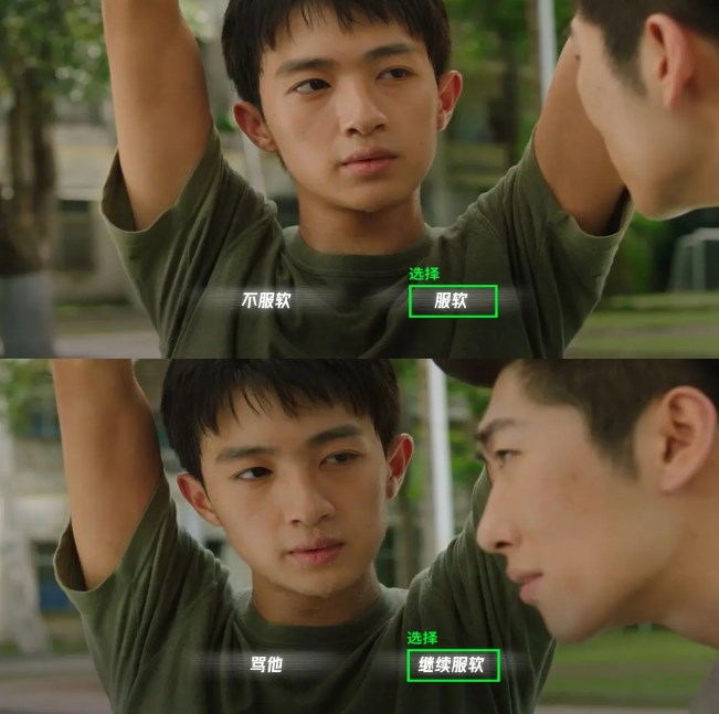 直到张扬在操场受罚,出现新选项后,一直选择“服软”的选项: