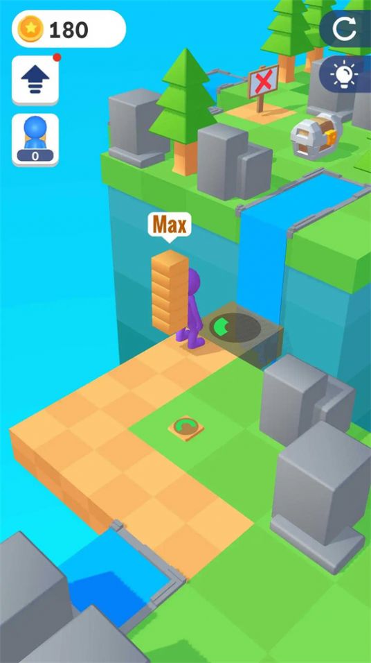 2.小人会不断的去搬砖块来将路面铺平,这样才可以去到其他地方。