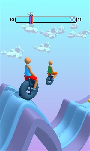 3.玩家不但要加快自己跑酷的步伐,同时还要保证独轮的平衡。