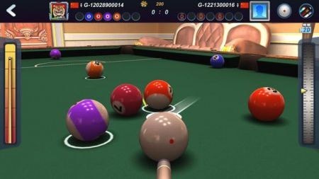 1、玩家只需轻松操控自己的台球杆,迅速将自己选定的台球号码对应的球打进洞内即可。