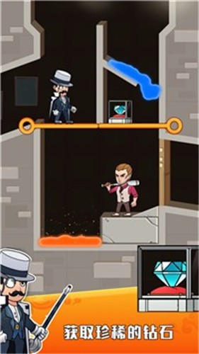 黄金大盗是一款趣味性十足的解谜闯关类游戏。该游戏运用了最为经典的拉针解谜玩法,玩家在游戏中需不断尝试,才能成功解救公主。所有关卡内容皆经过精心设计,闯关时玩家可自行选择使用不同道具。