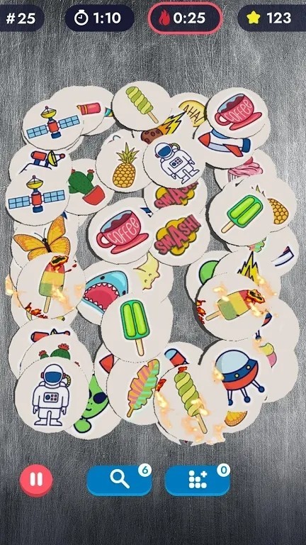 这是一款超有趣的休闲闯关消除游戏。游戏里有充满趣味的挑战模式,搭配轻松欢快的背景音乐,玩家能尽情沉浸其中,开启关卡挑战。它很考验玩家的观察能力,而且还有时间限制哦,赶紧抓住时间,找出相同图案来消除吧。