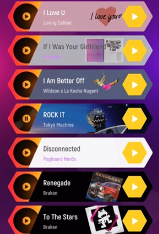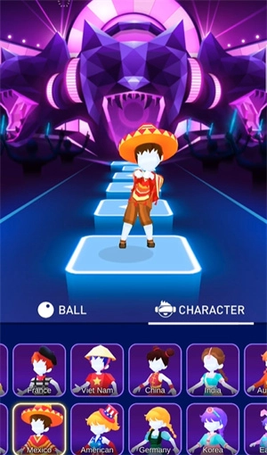 节奏弹球里收录了上千首热门歌曲,玩家能随时挑选一首开启挑战。只需跟着音乐节奏持续点击对应的音符,就能让弹球快速向前跳跃,还能及时收集出现的钻石。而钻石可以用来在商店里购买各式各样的弹球皮肤和道具。