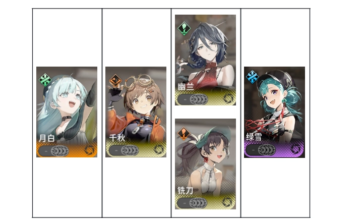 常规推荐阵容为:对单输出+月白+群体输出+绿雪。